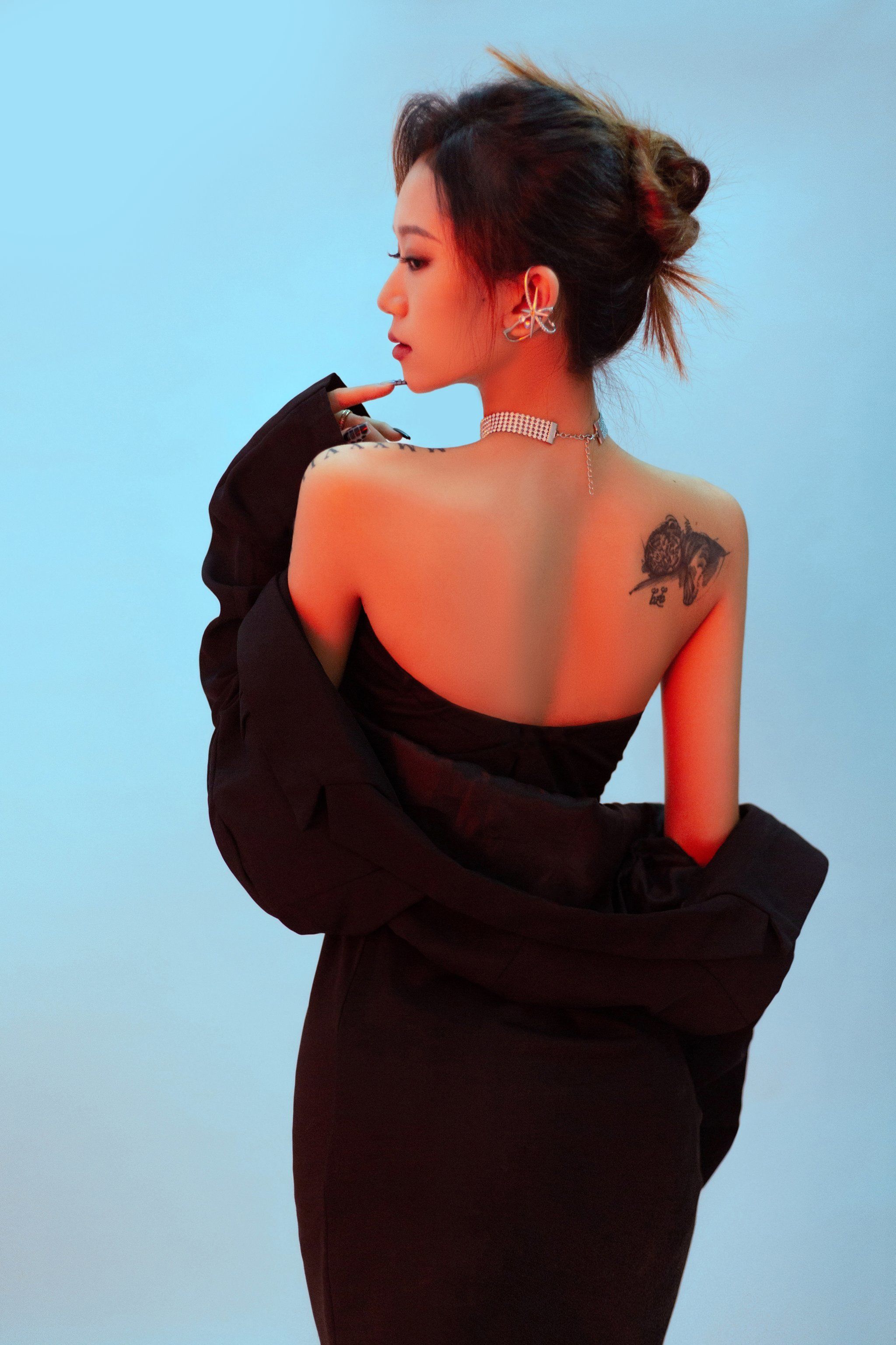 国产的亚洲模特穿着丝袜,展示了一套精致的制服。